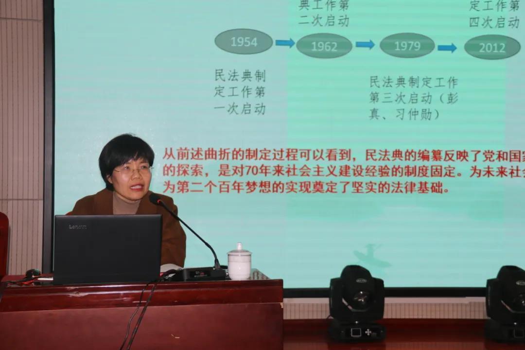 为深入贯彻习近平总书记关于学习贯彻民法典的重要讲话精神,学习好、推进好、保障好民法典的教学和实施,做学习、传播、遵守、维护民法典的表率。12月18日下午,澳门十大网投正规官网组织全体教职工进行了民法典集中学习活动,学院民法教研室、法律系焦慧君老师以《幸福民法典》为题,从民法典立法背景、立法理念、立法体系和精神等方面带领教职工进行了集中学习。