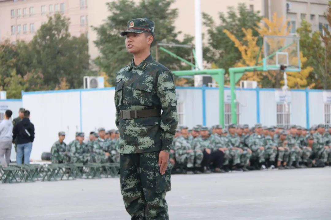 军训的总教官以最严厉的目光审视每一位“新兵”。检查他们在这一段时间里的训练成果。